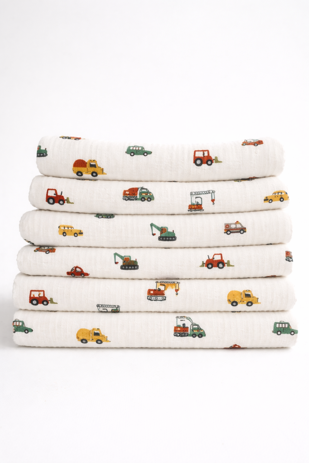 Prachtige warm witte hydrofiel met gekleurde voertuigen er op. Voor de stoere jongens en meiden!