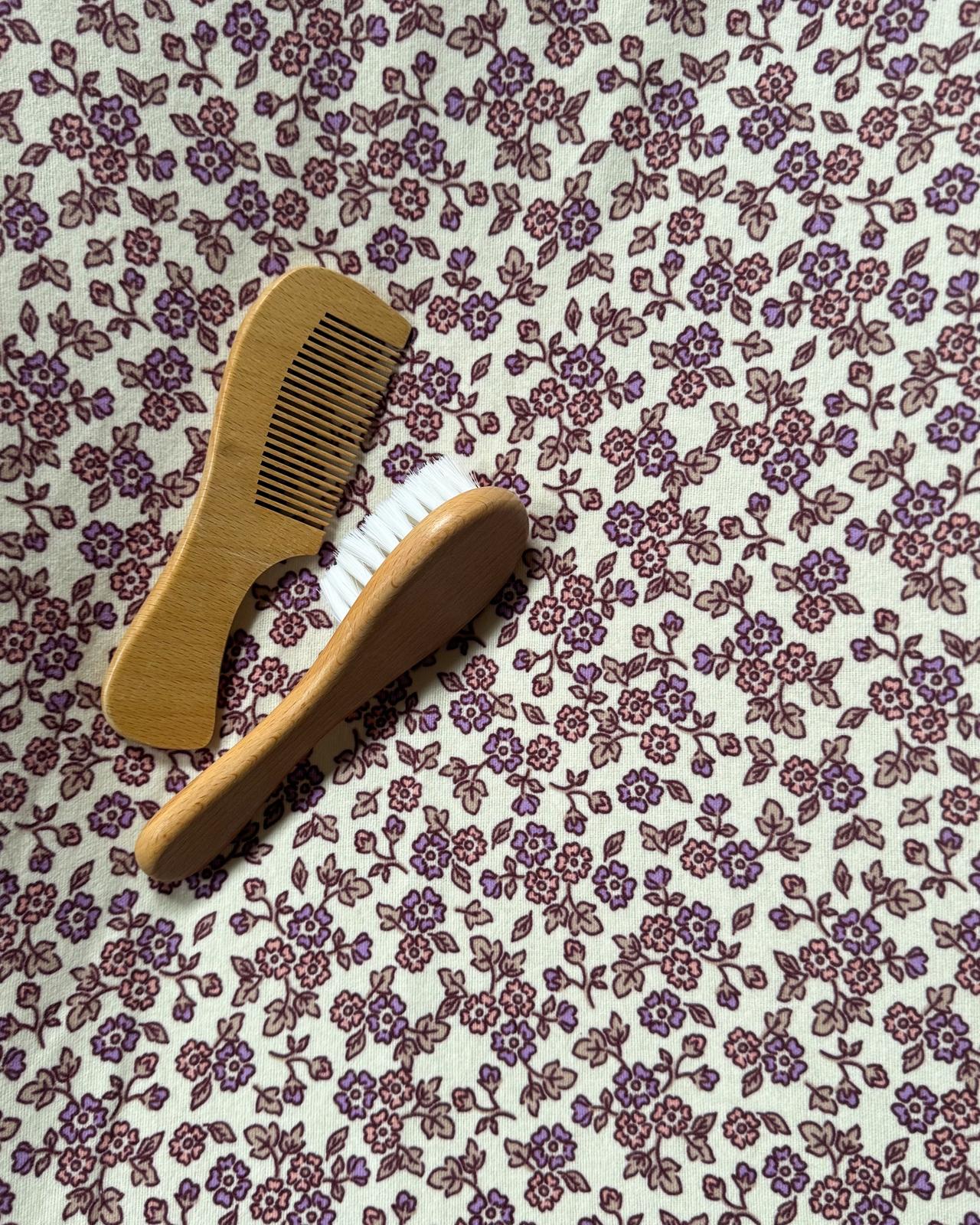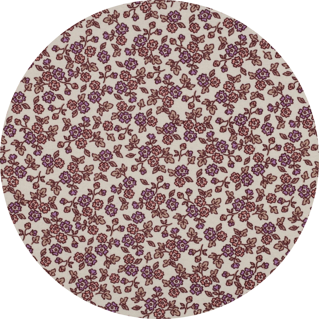 Een zacht en warm hoesje voor om het aankleedkussen van 100% flanel katoen met prachtige paarse en roze bloemen met taupe kleurige takjes, de ondergrond is naturel.